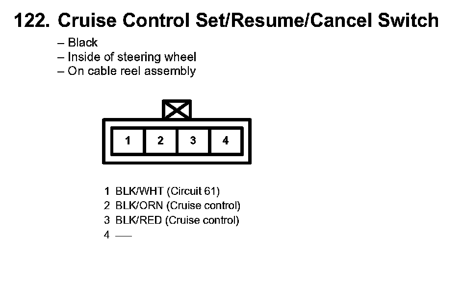 122. Cruise Control Set/Resume/Cancel Switch: