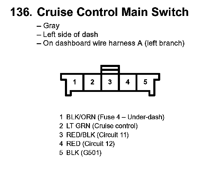 136. Cruise Control Main Switch: