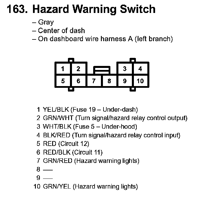 163. Hazard Warning Switch: