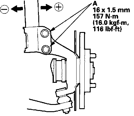 7. Replace the damper pinch bolts with the adjusting bolts (A), and adjust the camber angle.