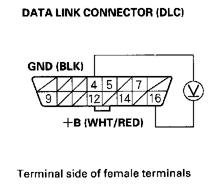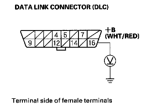 1. Measure voltage between DLC terminal No.16 and body ground.