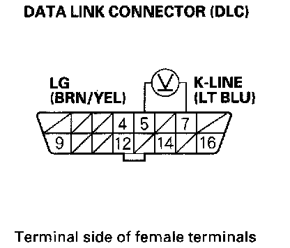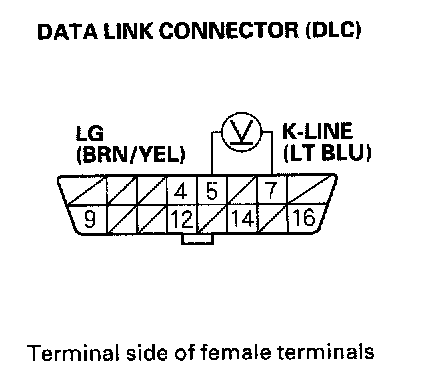 13. Measure voltage between DLC terminals No.5 and No.7.