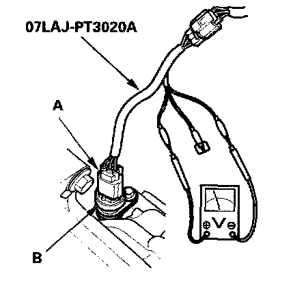 1. Disconnect the 3P connector from the vehicle speed sensor (VSS) (A).