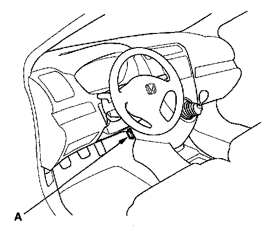 2. If the MIL stays on, connect the HDS or a scan tool to the data link connector (DLC) (A) located under the driver's side of the dashboard.