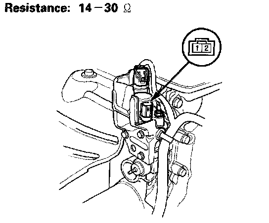 2. Measure resistance between VTEC solenoid valve connector terminals No.1 and No.2.