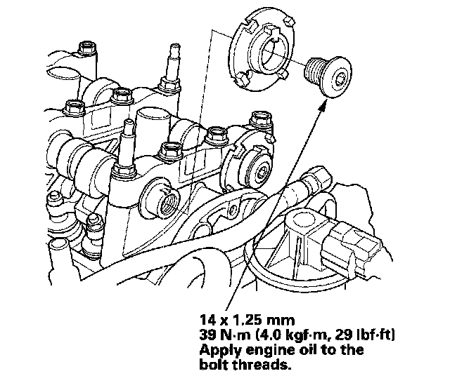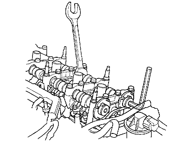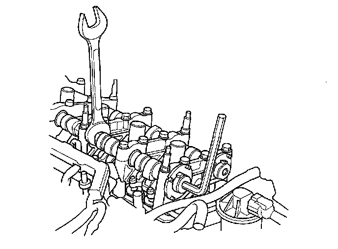 2. Hold the camshaft with an open-end wrench, then loosen the bolt.