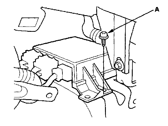 6. Pull down the console carpet on the passenger's side, then remove the Torx bolt (A) from the SRS unit.