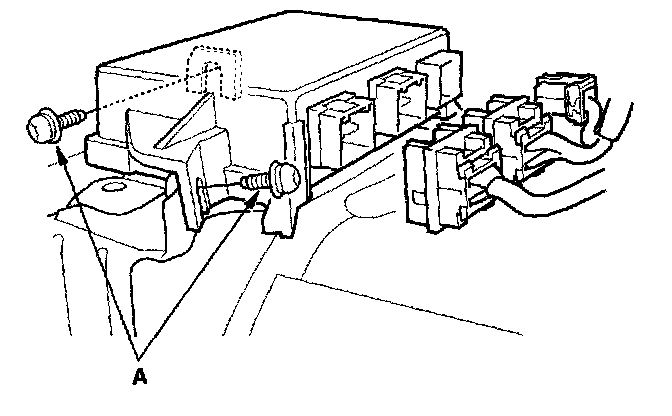 7. Pull down the console carpet on the driver's side, then disconnect the connectors. Remove the Torx bolts (A), then pull out the SRS unit.