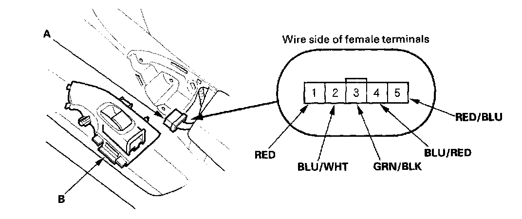 2. Disconnect the 5P connector (A) from the switch (B).