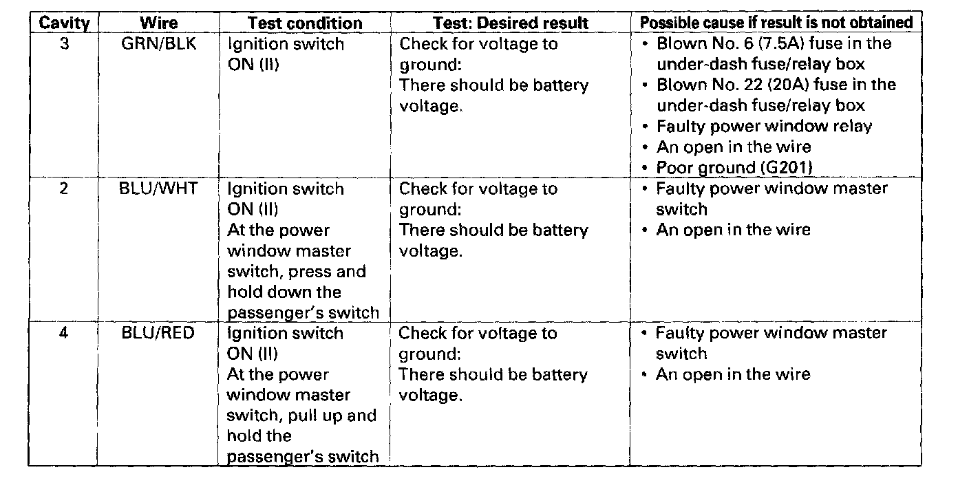 Passenger's Window Switch Input Test
