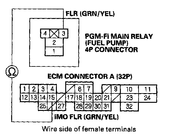 9. Reconnect ECM connector A (32P) and the PGM-FI main relay connectors.