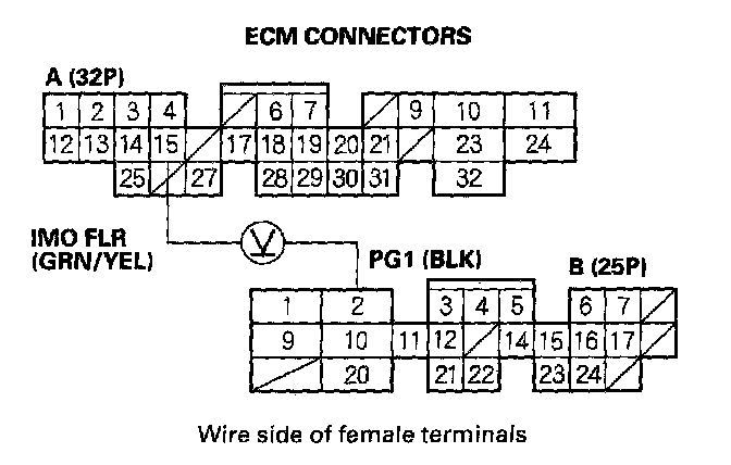 7. Turn the ignition switch OFF, and disconnect ECM connector A (32P).