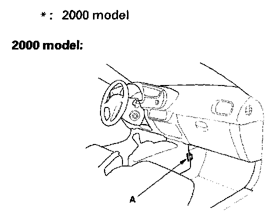 2. If the MIL stays on, connect the HDS or scan tool to the data link connector (DLC) (A) located under the driver's (passenger's) side of the dashboard.