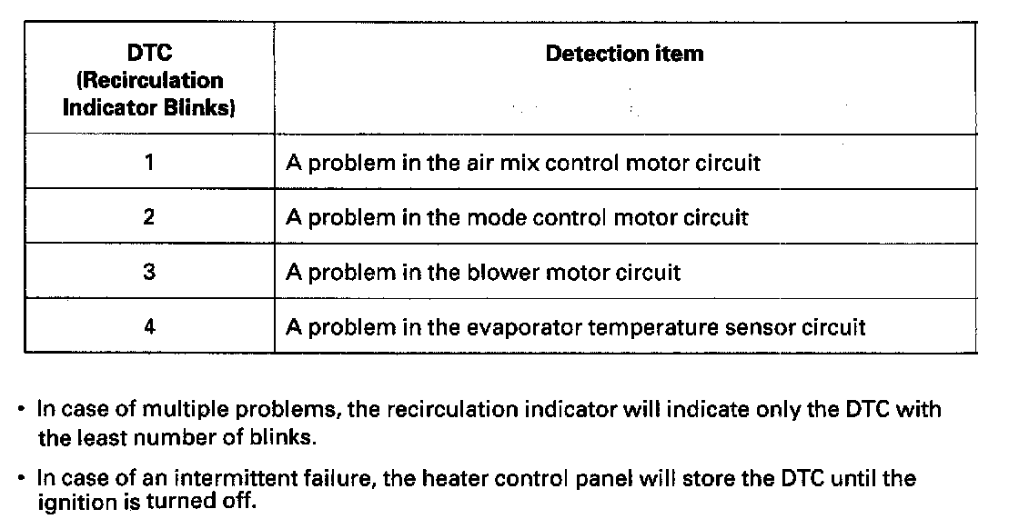 DTC List - Heating/Air Conditioning