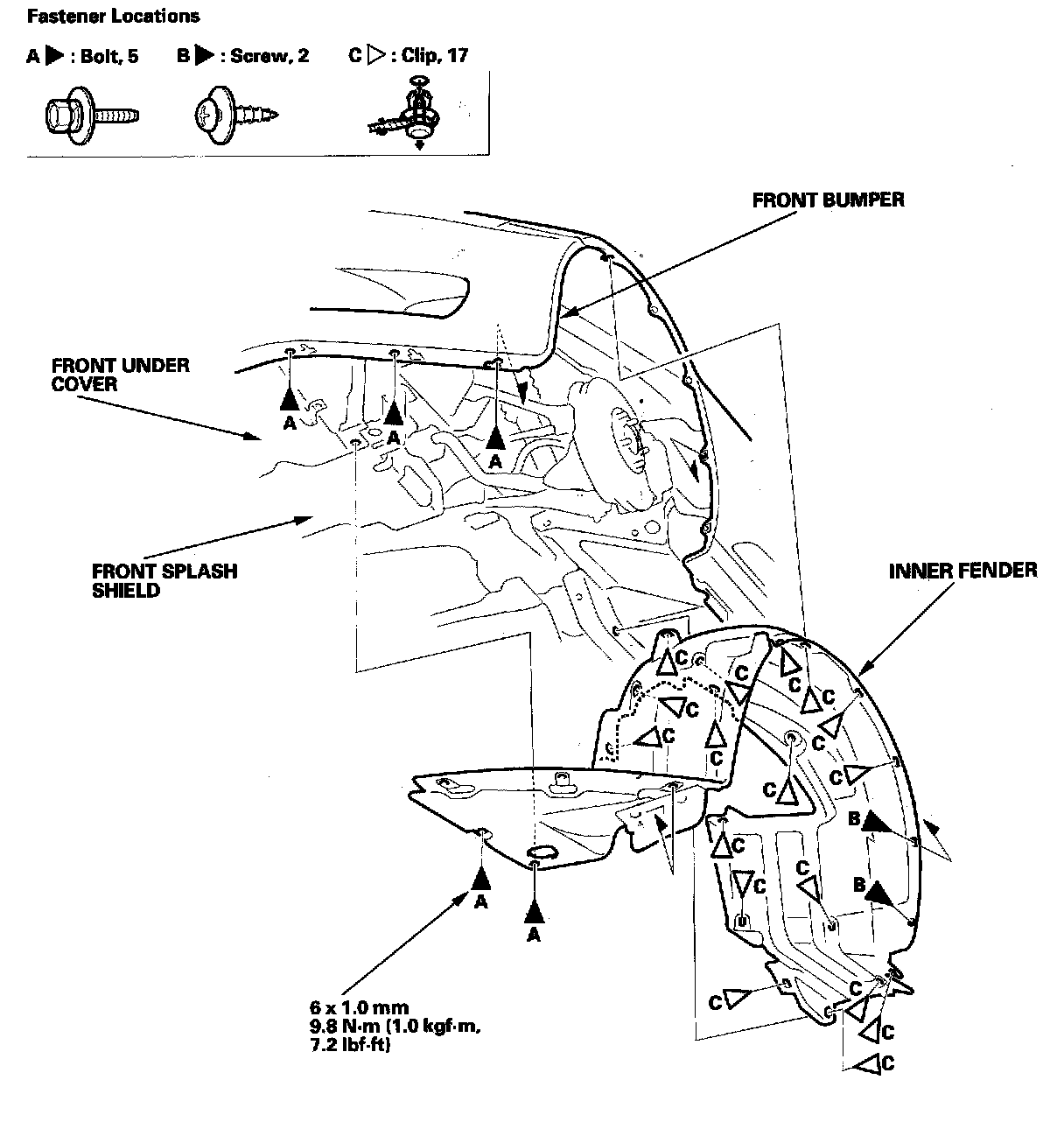 3. Install the inner fender in the reverse order of removal, and note these items: