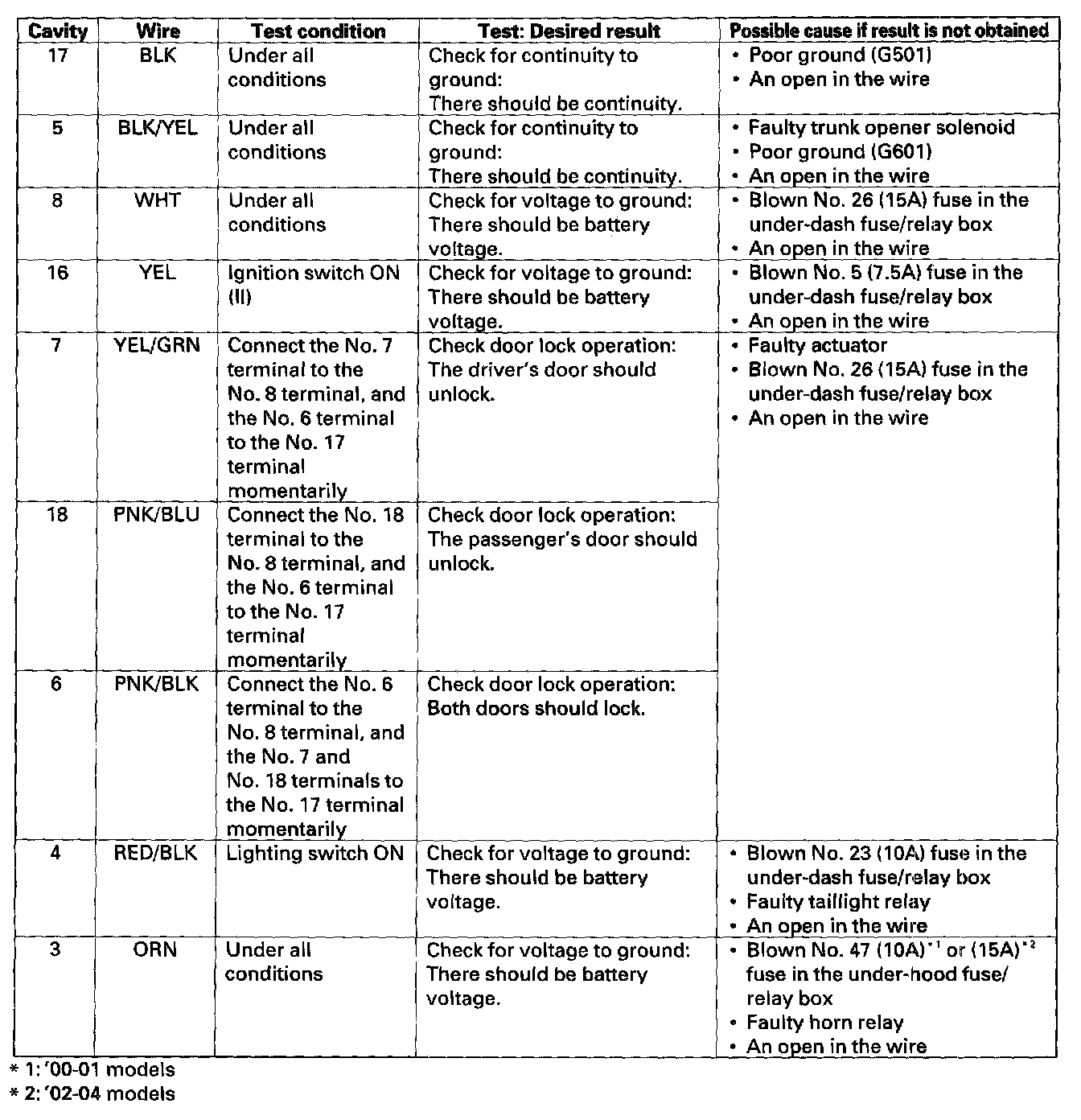 Keyless Door Lock Control Unit Input Test1. Disconnect the 18P connector from the keyless door lock control unit.