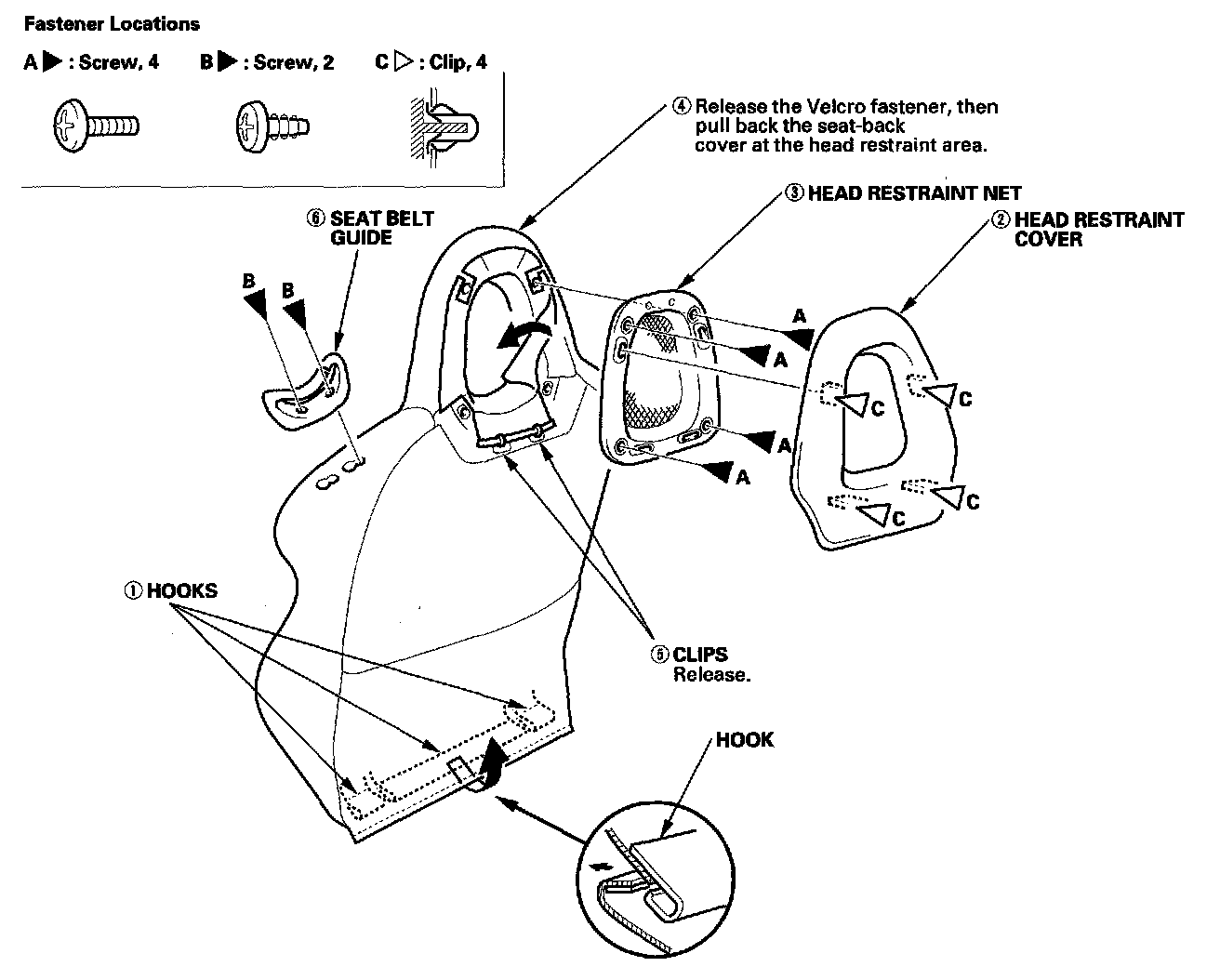 1. Remove the seat-back cover in numbered sequence.