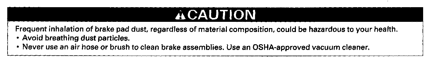 ^ Make sure no dirt or other foreign matter gets in the brake fluid. Make sure no grease or oil gets on the brake discs or pads. When reusing pads, always reinstall them in their original positions to prevent loss of braking efficiency.