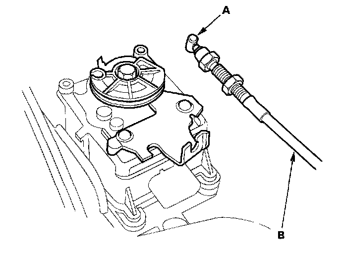 2. Disconnect the actuator cable end (A), and remove the cable (B) from the cruise control actuator.