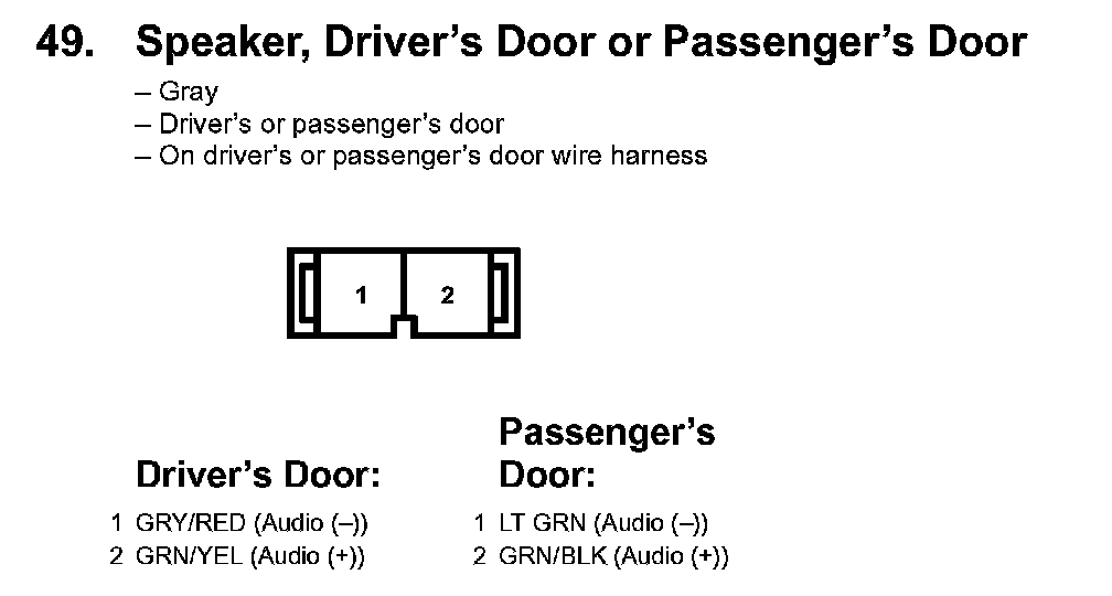 49. Speaker, Driver's Door Or Passenger's Door:
