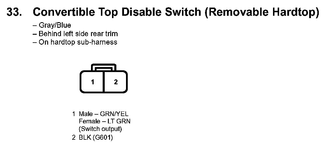 33. Convertible Top Disable Switch (Removable Hardtop):