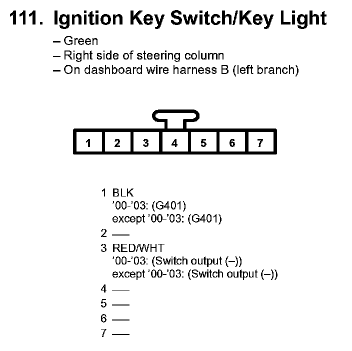 111. Ignition Key Switchikey Light: