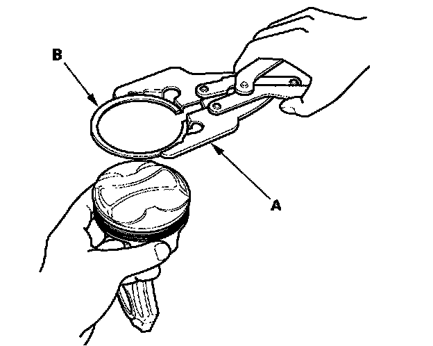 2. Measure the piston ring end-gap (B) with a feeler gauge: