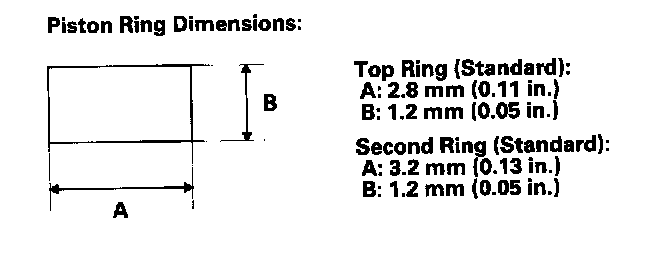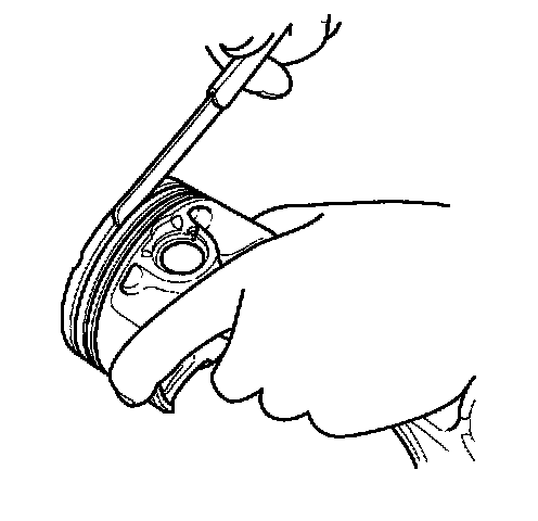 4. Clean all ring grooves thoroughly with a squared off broken ring or ring groove cleaner with a blade to fit the piston grooves. The top and 2nd ring grooves are 1.2 mm (0.05 inch) wide. The oil ring groove is 2.0 mm (0.08 inch) wide. File down a blade if necessary. Do not use a wire brush to clean the ring grooves, or cut the ring grooves deeper with the cleaning tools.