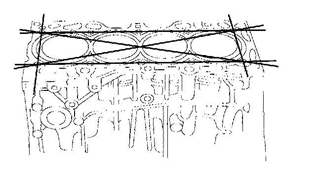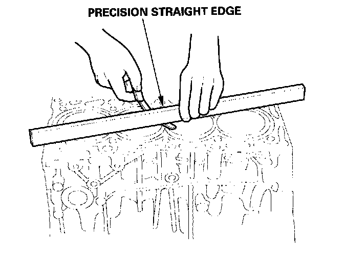 5. Check the top of the block for warpage. Measure along the edges and across the center as shown.