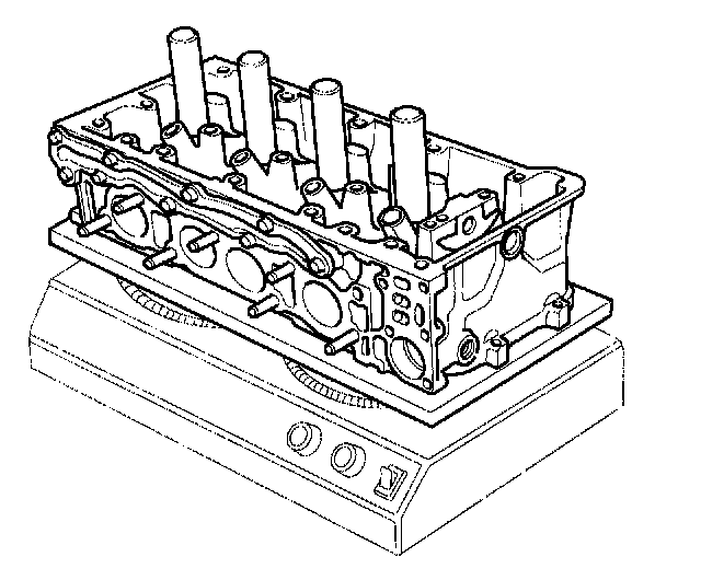 3. Use a hot plate or oven to evenly heat the cylinder head to 300°F (150°C). Monitor the temperature with a cooking thermometer. Do not get the head hotter than 300°F (150°C); excessive heat may loosen the valve seats.