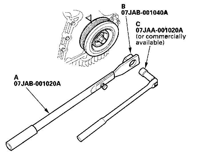 41. Remove the bolt with a heavy duty 19 mm socket (C) and breaker bar.