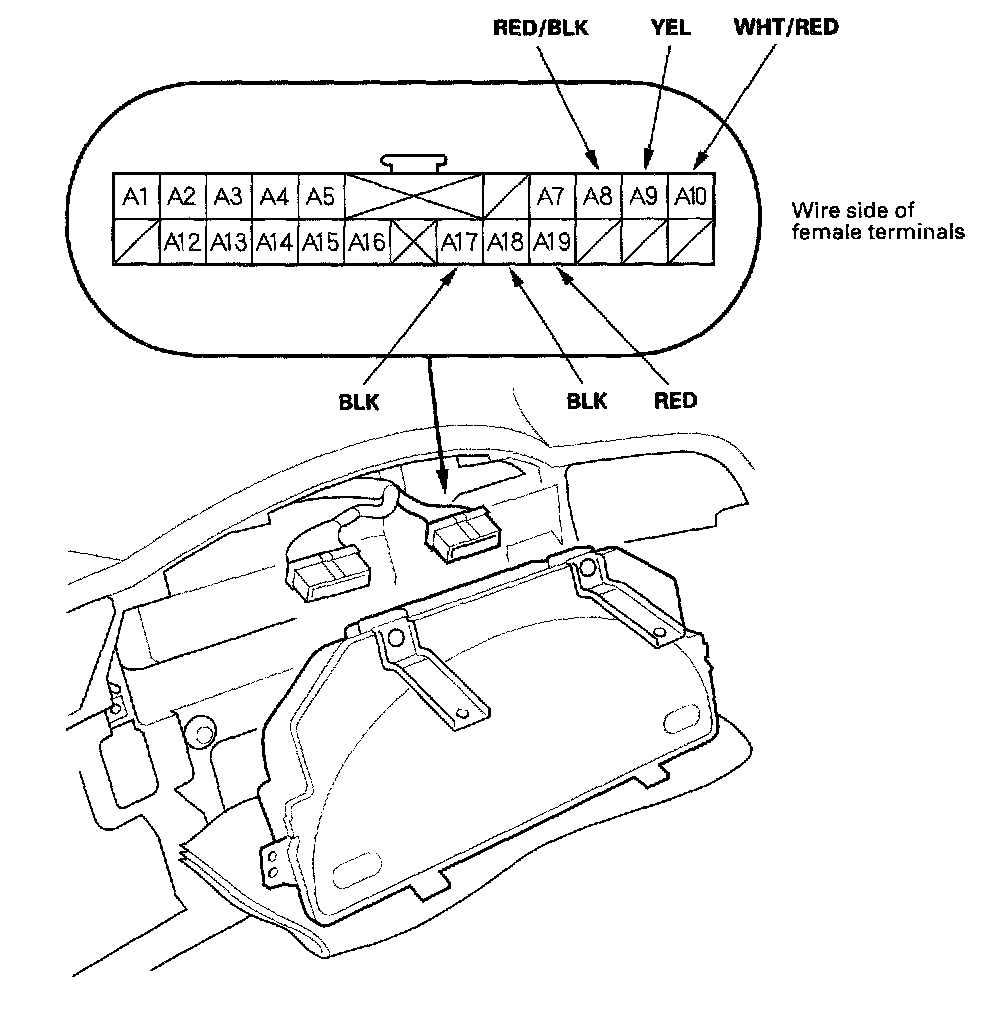 2. Inspect the gauge assembly connector A (22P) terminals to be sure they are all making good contact.