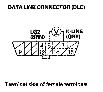 5. Measure voltage between DLC terminals No. 5 and No. 7.