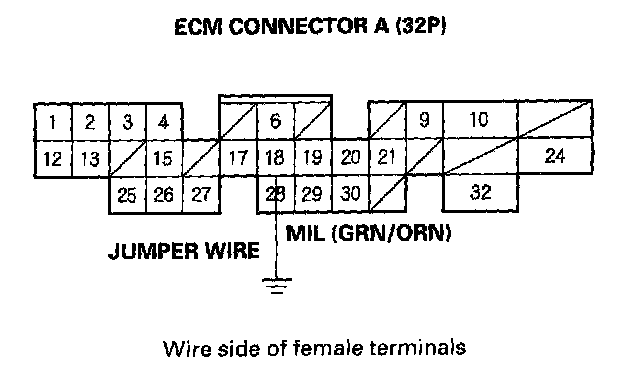 5. Connect ECM connector terminal A18 to body ground with a jumper wire.