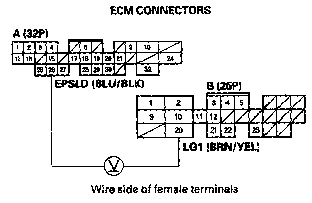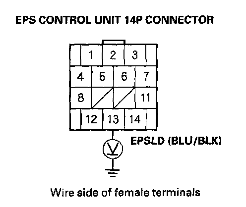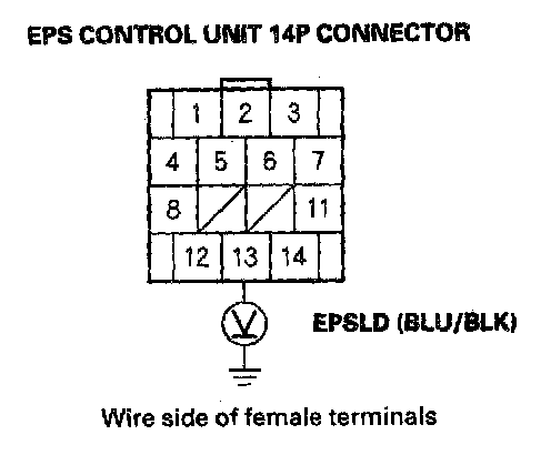 9. Measure voltage between EPS control unit terminal No. 13 and body ground.