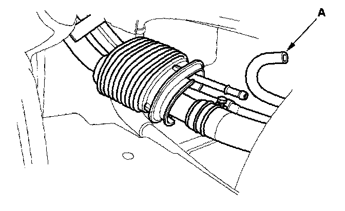 5. Apply vacuum to the fuel tank vapor recirculation hose (A).