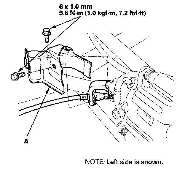 11. Remove the bolts from both ABS rear wheel sensor harness brackets (A),