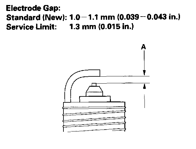 2. Do not adjust the gap of platinum tip plugs (A); replace the spark plug if the gap is out of specification.