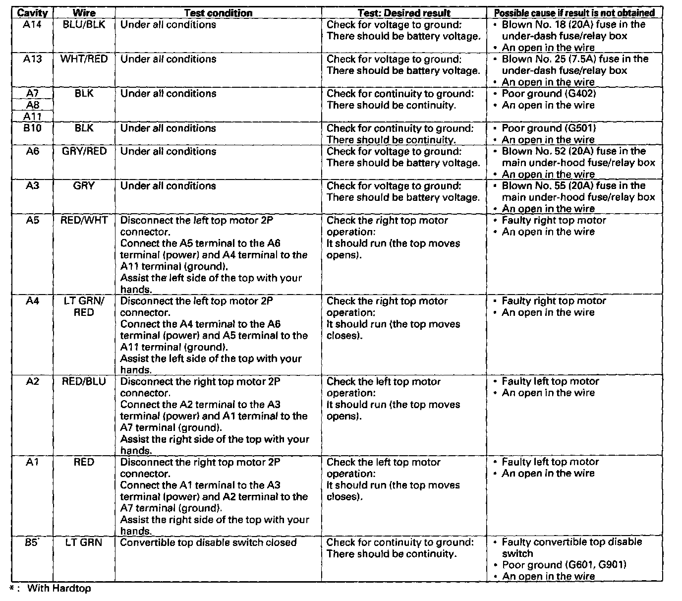 Convertible Top Control Module: Testing and Inspection