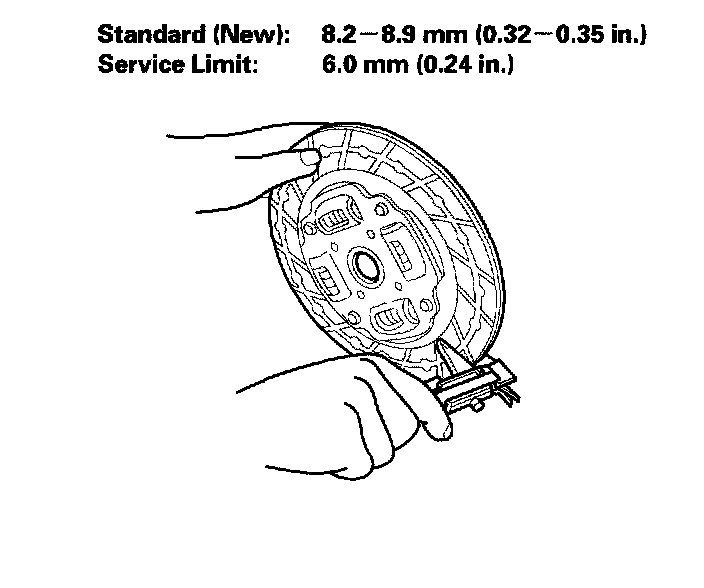 Measure the clutch disc thickness. If the thickness is less than the service limit, replace the clutch disc