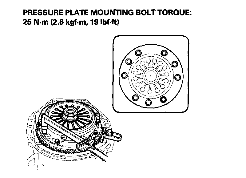 Torque the mounting bolts in a criss-cross pattern. Tighten the bolts in several steps to prevent warping the diaphragm spring