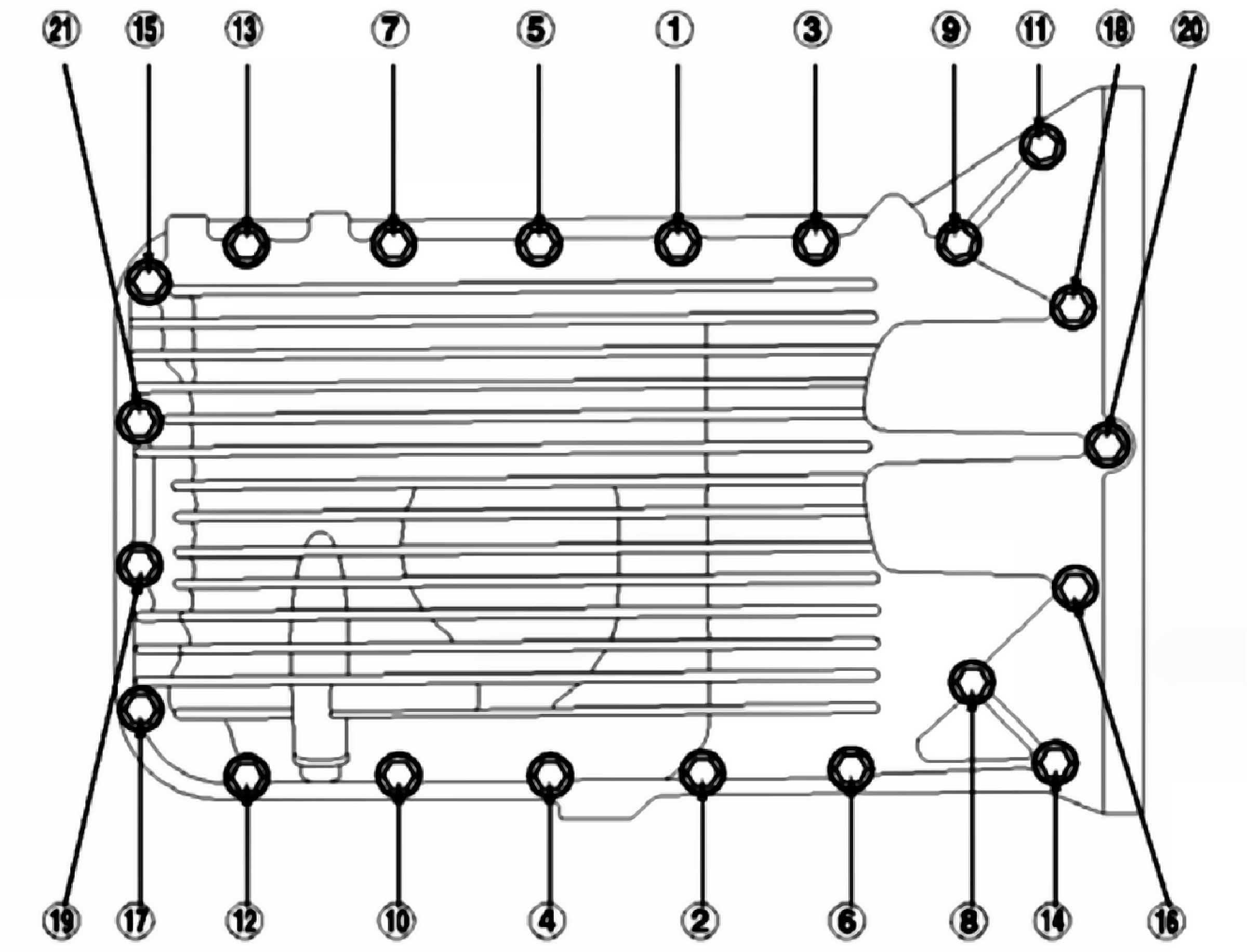Tighten the bolts in two or three steps. In the final step, tighten all bolts, in sequence