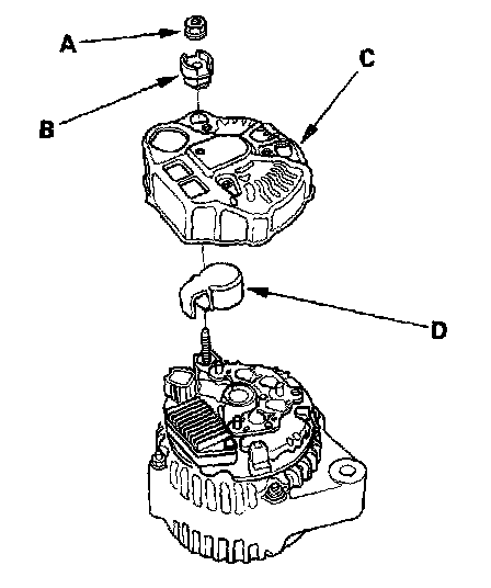 24. Reassemble the alternator in reverse order of disassembly, and note these items: