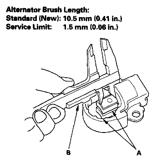 19. Measure the length of both brushes (A) with a vernier caliper(B).