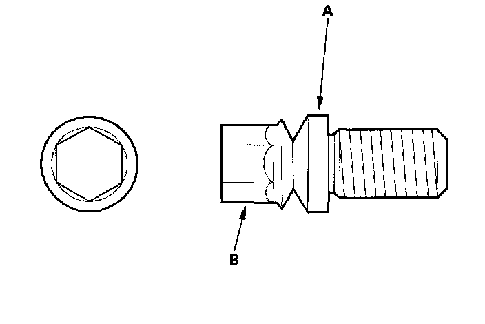 7. Tighten the shear bolts (A) until the hex heads (B) twist off.
