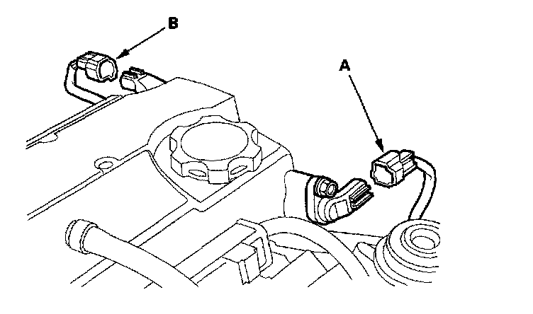 14. Disconnect the TDC1 (A) and TDC2 (B) sensor connectors.
