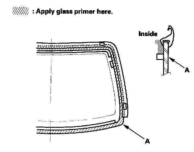 18. With a sponge, apply a light coat of glass primer around the edge of the glass (A), then lightly wipe it off with gauze or cheesecloth: