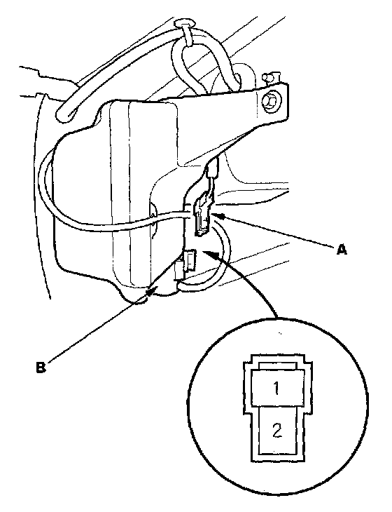 3. Test the washer motor by connecting battery power to terminal No.1 and ground to terminal No.2.