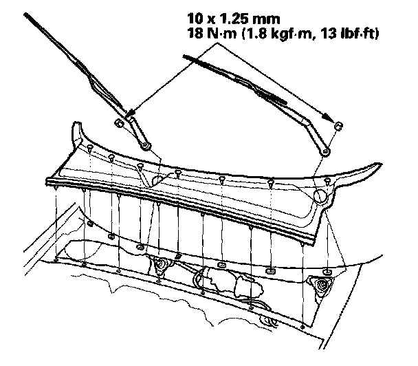 Wiper Motor Replacement1. Open the hood, and remove the cap nuts and the wiper arms,