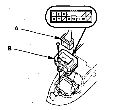 2. Disconnect the 13P connector (A) from the power mirror switch (B).